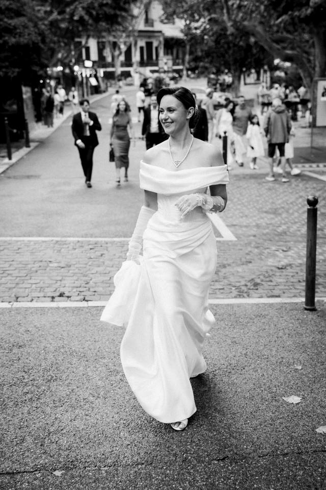 La journée a débuté dans l’effervescence joyeuse des préparatifs. Matea, resplendissante dans sa robe, s’est préparée avec ses demoiselles d’honneur dans l’intimité chaleureuse de la maison familiale, offrant déjà des éclats de rire et des regards complices. Pendant ce temps, Thomas, élégant et visiblement impatient, attendait sa promise. L’émotion était à son comble lorsque le cortège s’est dirigé vers la majestueuse église du vieux Bormes-les-Mimosas. Au cœur de ce village historique, classé parmi les plus beaux de France, l’échange des vœux fut un moment intense et profondément émouvant, entouré de l’architecture médiévale et de la douceur de vivre provençale.